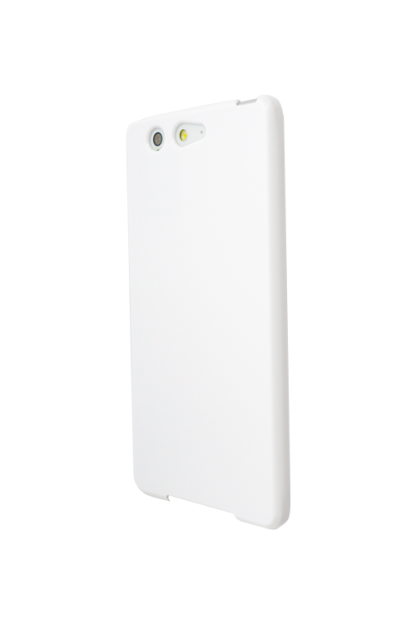 印刷前の3D真空昇華印刷スマホケースの素材はツヤのある白色のプラスチック(ポリカーボネート)となっております。